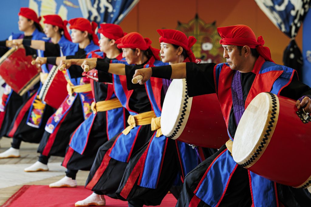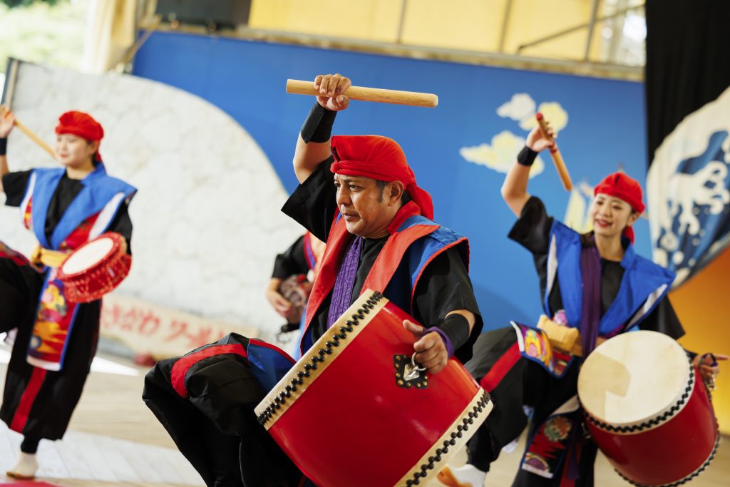 오키나와의 전통 예능을 바탕으로 박력 있는 일본 북의 연주를 도입한 유일무이의 스테이지를 전개해 왔습니다.