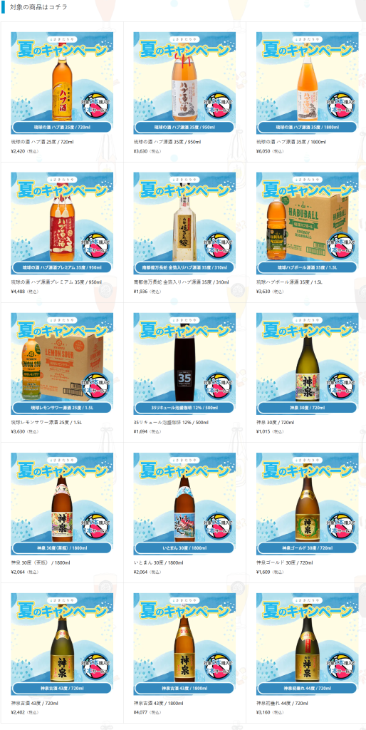 대상의 리큐어・아와모리를 좋아하는 조합으로 5개 구입하시면, 무려 1개 오마케♪