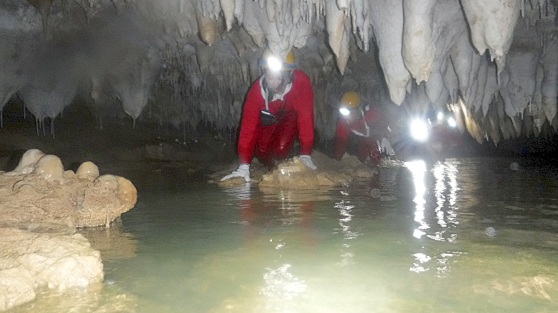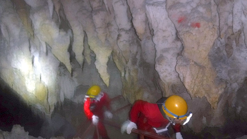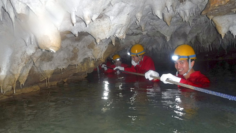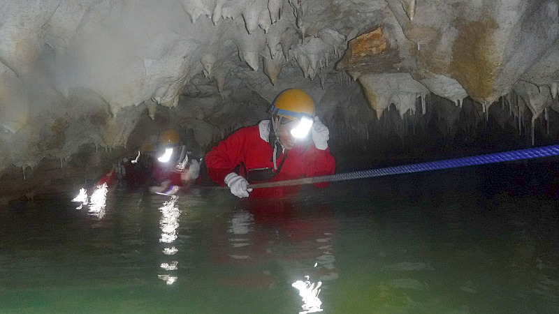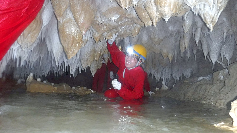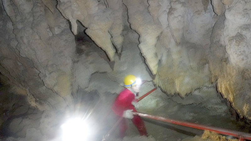 탐험 코스는 자연 그대로이기 때문에 천장이 낮기 때문에 위아래로 바쁩니다.