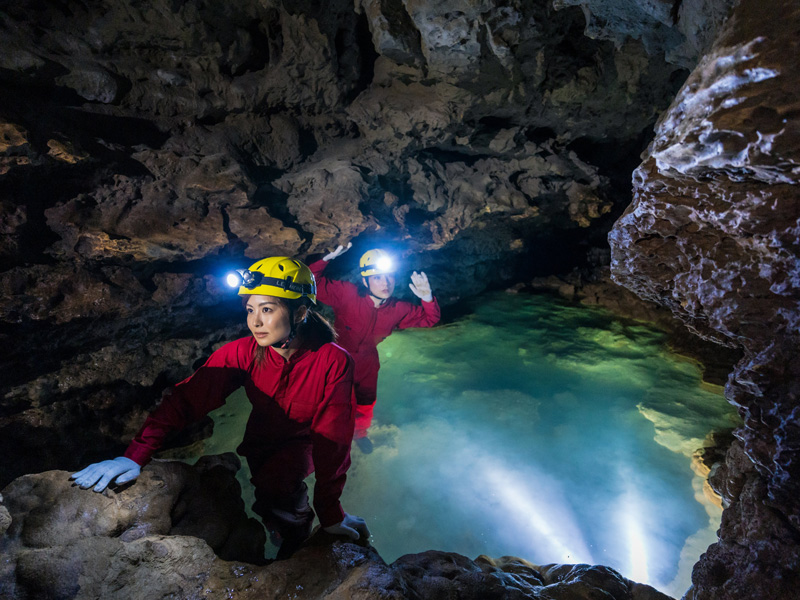 교쿠센도 종유동굴의 미공개 구역, 평소에는 갈 수 없는 자연 그대로의 동굴을 케이빙 인스트럭터와 함께 탐험하는 여름 한정 투어입니다.